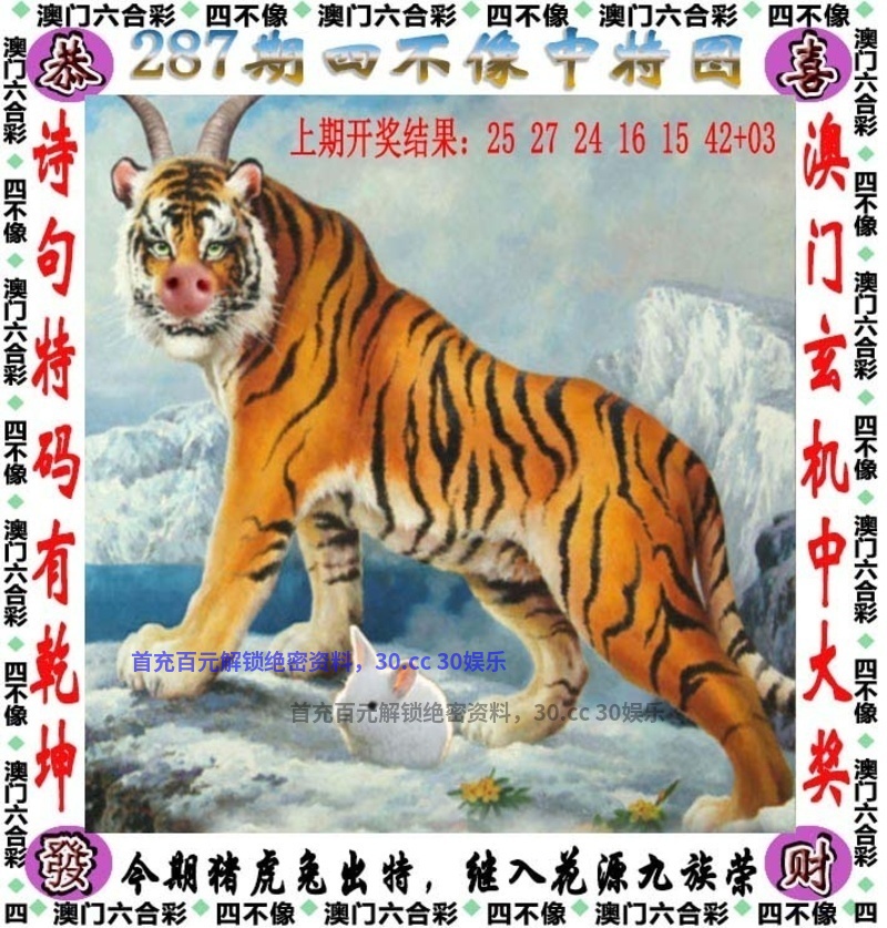 276期〖七肖〗虎猴羊鸡兔猪龙 |