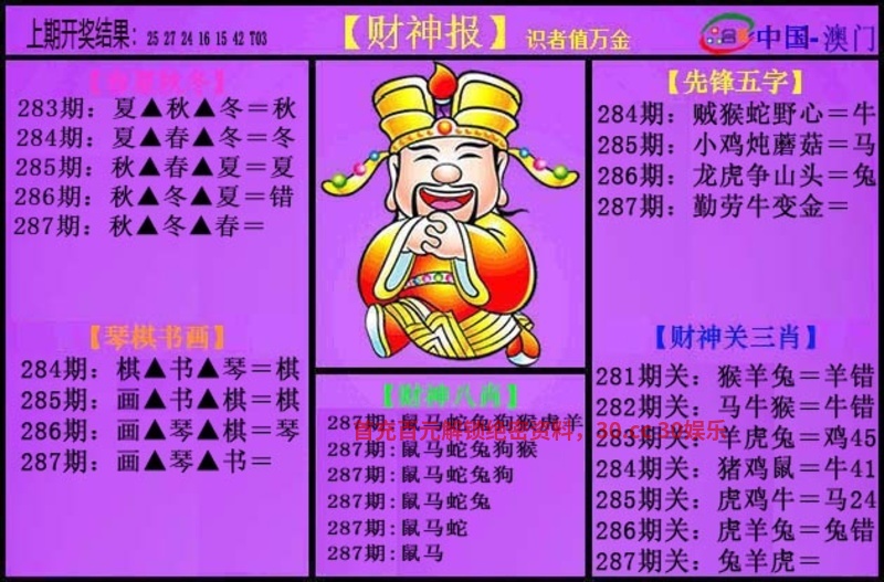 280期五段:【1段2段3段5段6段】开:鼠42准 |